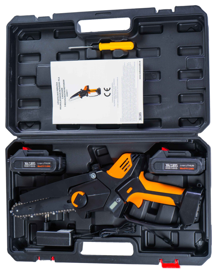 Akumulátorová reťazová píla s mazaním, lišta 15 cm, 2x bat. 2Ah 21V, 1x nabíjačka, VASKO