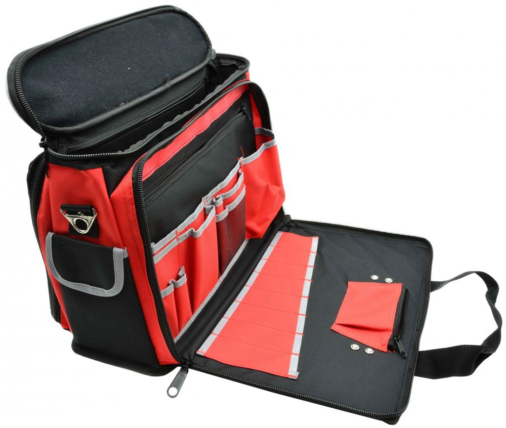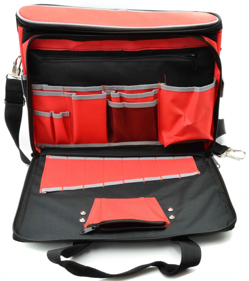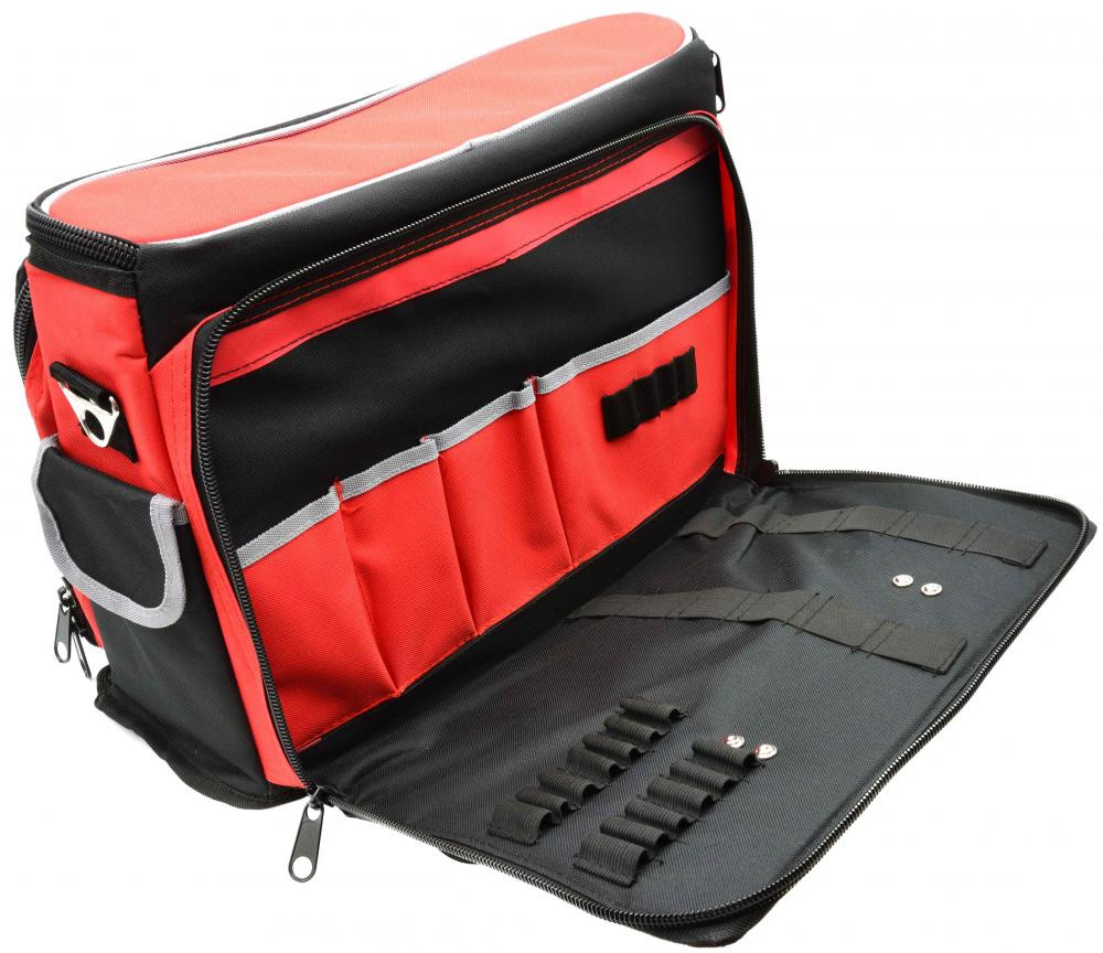 Dve bočné komory vybavené držiakom skrutkovača a kombinovanými kľúčmi, ako aj menšie a väčšie vrecká na náradie a príslušenstvo.