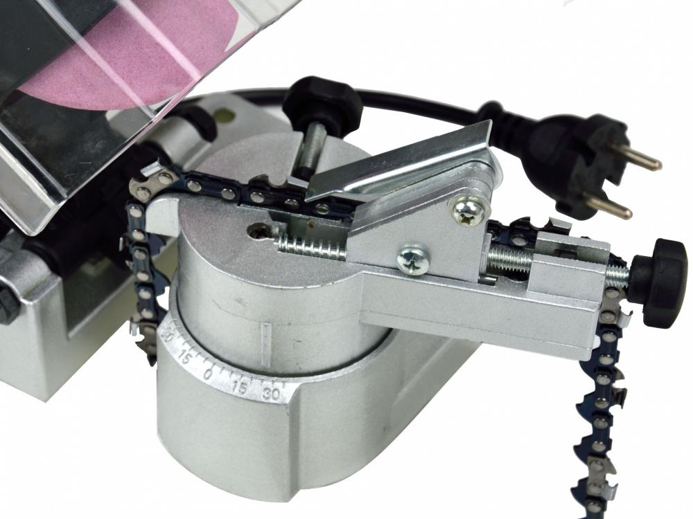 Brúska je určená na brúsenie reťazí elektrických a benzínových reťazových píl. Výkon 220 W a rýchlosť otáčania 7500 ot / min vám umožňujú rýchlo dosiahnuť požadovaný účinok. Prístroj má zabudovaný napínač, ktorý v kombinácii s jasnou stupnicou ostrenia zaisťuje veľmi presné brúsenie.