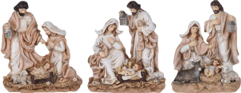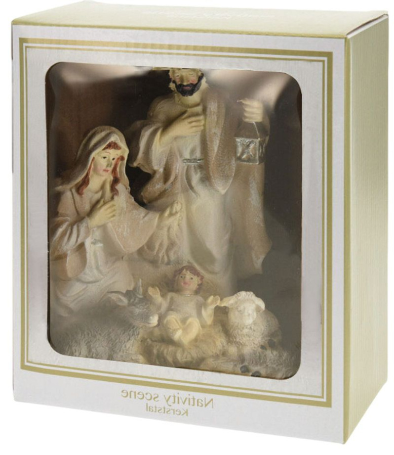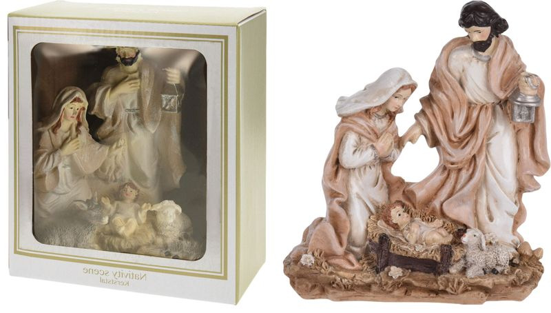 Elegantná vianočná dekorácia Betlehem – Narodenie Ježiša je krásnym symbolom Vianoc, ktorý do vášho domova prinesie teplo, pokoj a sviatočnú atmosféru. Zachytáva Svätú rodinu – Pannu Máriu, svätého Jozefa a malého Ježiška v jasličkách – doplnených o detaily ako baránky či lampáš, čím vytvára pôsobivú scénu Narodenia Krista.