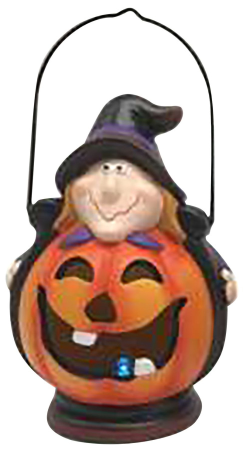Dekorácia MagicHome Nature, Lampášik tekvica LED, s čarodejníkom, keramika, 15 cm