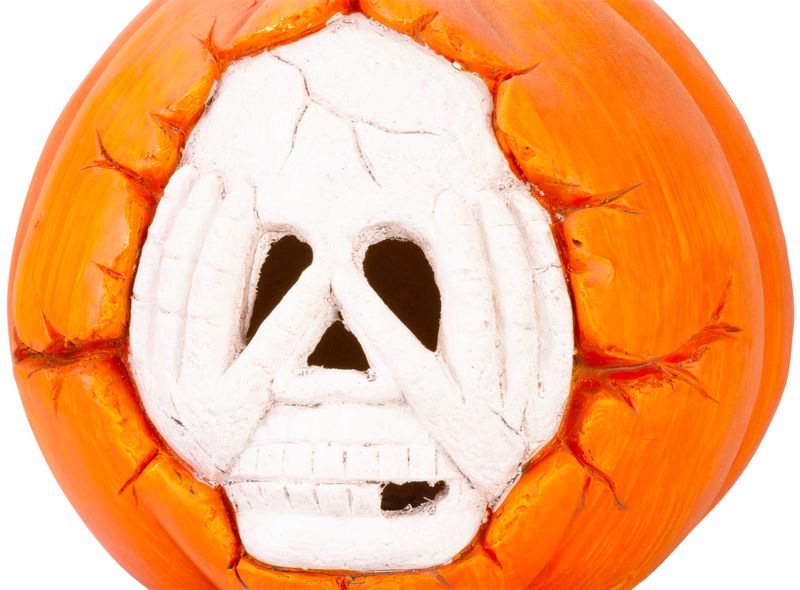 Dekorácia MagicHome Nature, Tekvica LED, lebka, keramika, 29 cm