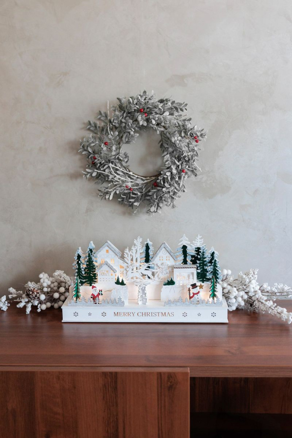 Vytvorte si doma čarovnú atmosféru Vianoc s nádhernou drevenou dedinkou MagicHome. Detailne spracované domčeky, stromčeky a zimné postavičky sú doplnené o 15 LED svetiel v teplej bielej farbe, ktoré navodia príjemné sviatočné osvetlenie.