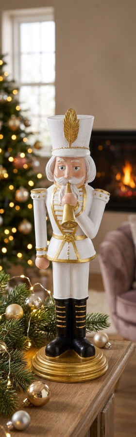 Dekorácia MagicHome Vianoce, Luskáčik s trúbkou, zlatý, polyresin, 20x20x30 cm