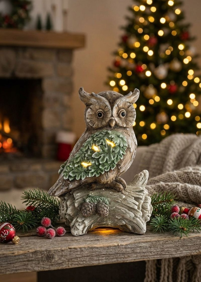 Krásna dekorácia MagicHome Sova na kmeni skrášli Váš domov počas vianočného obdobia.