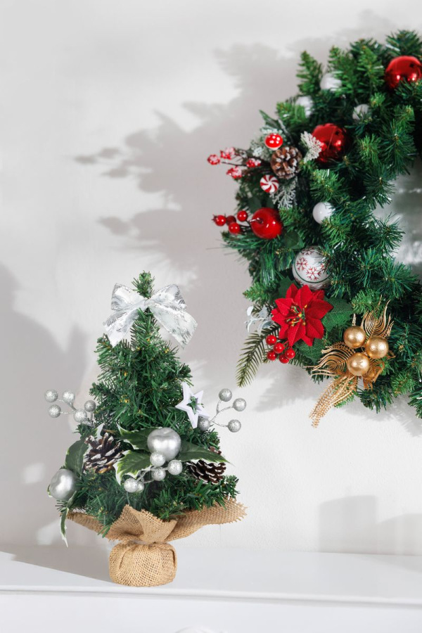 Dekorácia MagicHome Vianoce, stromček, 30 cm je štýlovým doplnkom, ktorý navodí sviatočnú atmosféru v každom interiéri. Malý vianočný stromček je zdobený striebornými ozdobami, šiškami a elegantnou mašľou, vďaka čomu pôsobí prirodzene a zároveň slávnostne. Jeho kompaktná veľkosť ho predurčuje na umiestnenie na stôl, policu alebo do okna, kde sa stane neprehliadnuteľným prvkom vašej výzdoby. Vďaka stabilnému podstavcu v jutovej úprave je stromček nielen praktický, ale aj estetický.