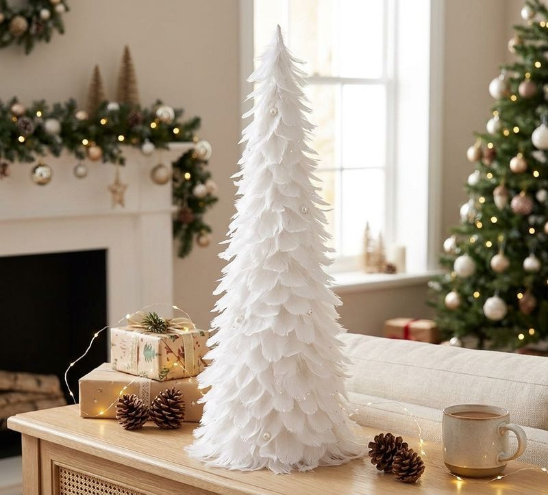 Dekorácia MagicHome Vianoce, Stromček z páperia, biely, 24x60 cm