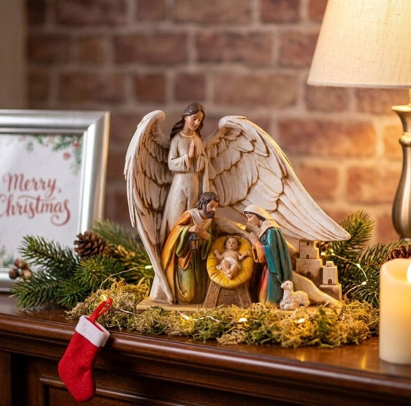 Krásna dekorácia MagicHome Svätá rodinka pod krídlami anjela skrášli váš domov počas vianočného obdobia. Dekorácia je vyrobená z polyresinu a jej výška je 21,5 cm.