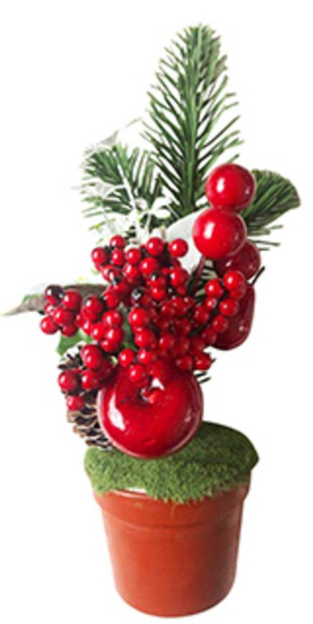 Dekorácia MagicHome Vianoce, Vetvičky v črepníku, s jablkom, 25cm, 2ks