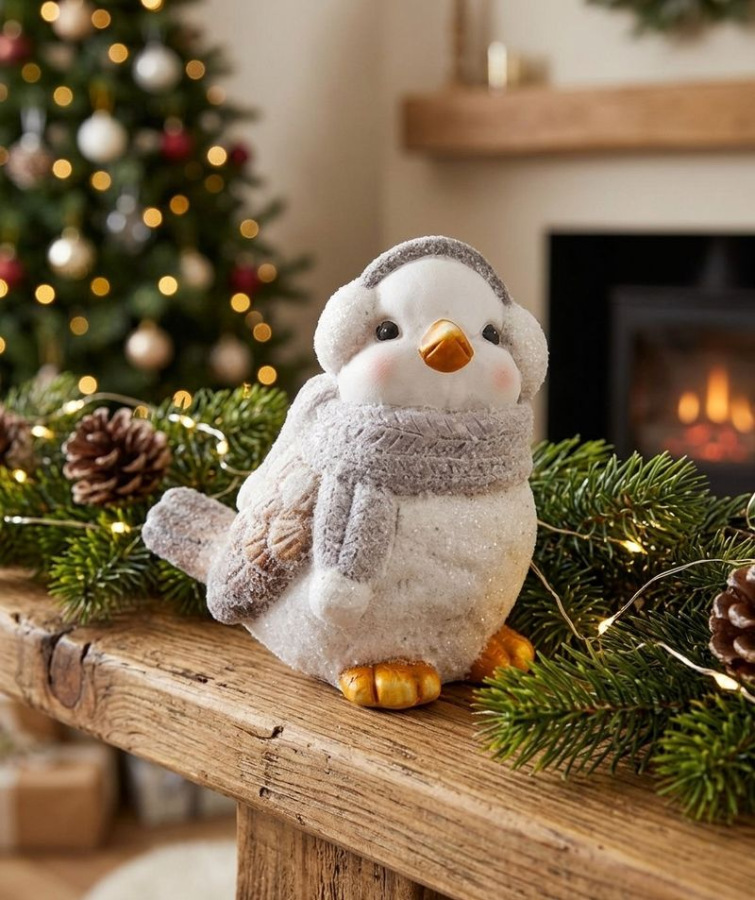 Krásna dekorácia MagicHome Vtáčika samčeka so sivým šálom skrášli Váš domov počas vianočného obdobia.