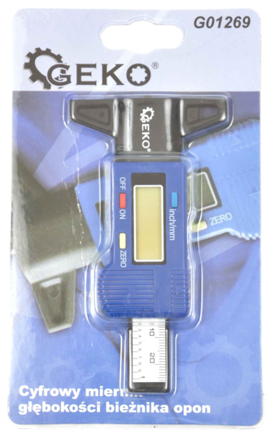 Digitálny merač hĺbky dezénu pneumatiky, 0-25,4 mm, GEKO