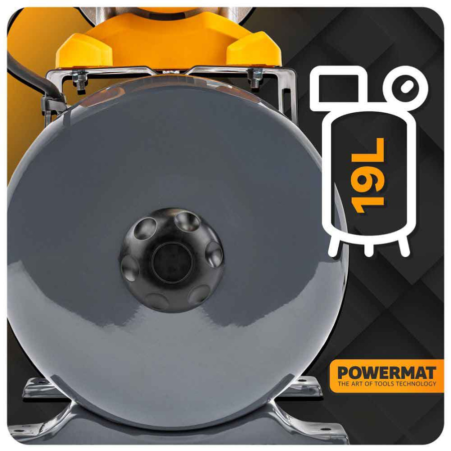Odolná 19-litrová oceľová nádrž udržiava tlak vody a znižuje frekvenciu prevádzky čerpadla, čo sa premieta do dlhšej životnosti zariadenia.
