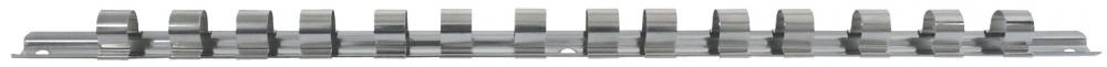 Držiak je ideálny na usporiadanie kompletných súprav hlavíc. Tri montážne otvory umožňujú priskrutkovanie pásu kdekoľvek. Určené pre 1/2 " hlavice.