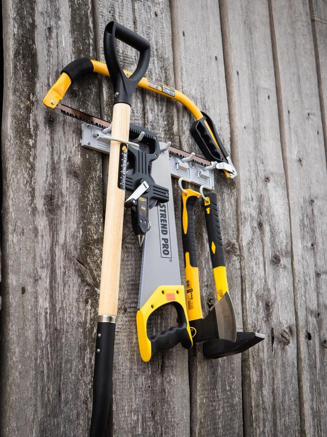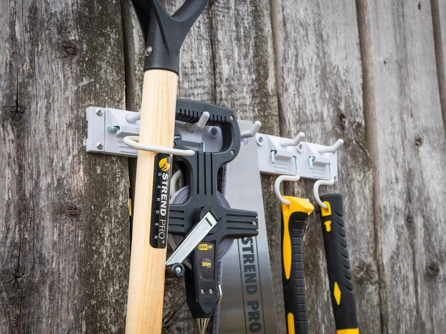 Praktický univerzálny držiak náradia výrazne ušetrí miesto pri uložení upratovacích pomôcok alebo náradia. Držiak na náradie sa upevňuje na stenu a je zadosťučinením pre každého, kto má rád poriadok. Vhodný do interiéru ako aj exteriéru. Držiak obsahuje 5 háčikov. Ideálny na uskladnenie domáceho a záhradného náradie ako napríklad pílky, lopaty, sekery, kladiva a iné.
