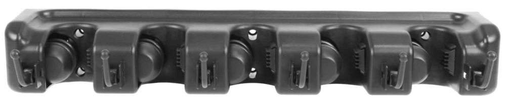 Držiak náradia s 5 miestami na zavesenie náradia. Maximálna šírka nástroja je približne 25 mm. Celková šírka rukoväte: 405 mm. Sada obsahuje 6 hmoždiniek a skrutiek na pripevnenie držiaka na stenu.