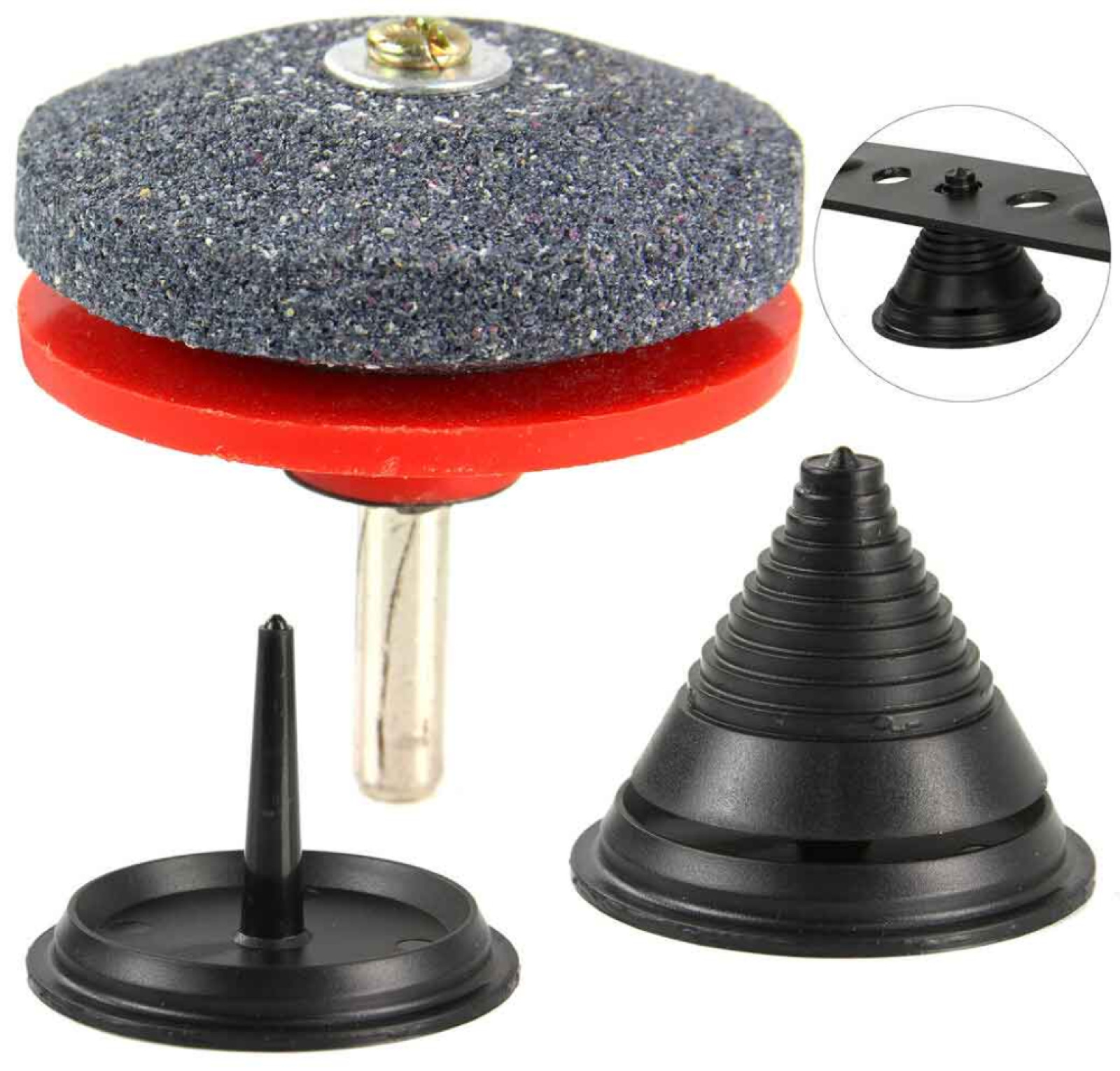 výsledok kosenia. Brúsny kotúč je vyrobený z odolného plastu a je upevnený na oceľovom čape. Brúsny kotúč stačí namontovať na vŕtačku alebo skrutkovač. Štít je kompatibilný s väčšinou vŕtačiek a skrutkovačov dostupných na trhu s 1/4" 6,35 mm konektorom. Dobrá tvrdosť, odolnosť proti opotrebeniu, trvácne pri používaní. Umožňuje rýchle brúsenie nožov za každých podmienok.