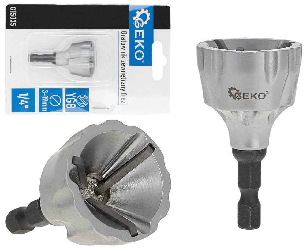 Fréza na zrážanie hrán skrutiek a trubiek s priemerom 3-19 mm, 6-hraná stopka, GEKO