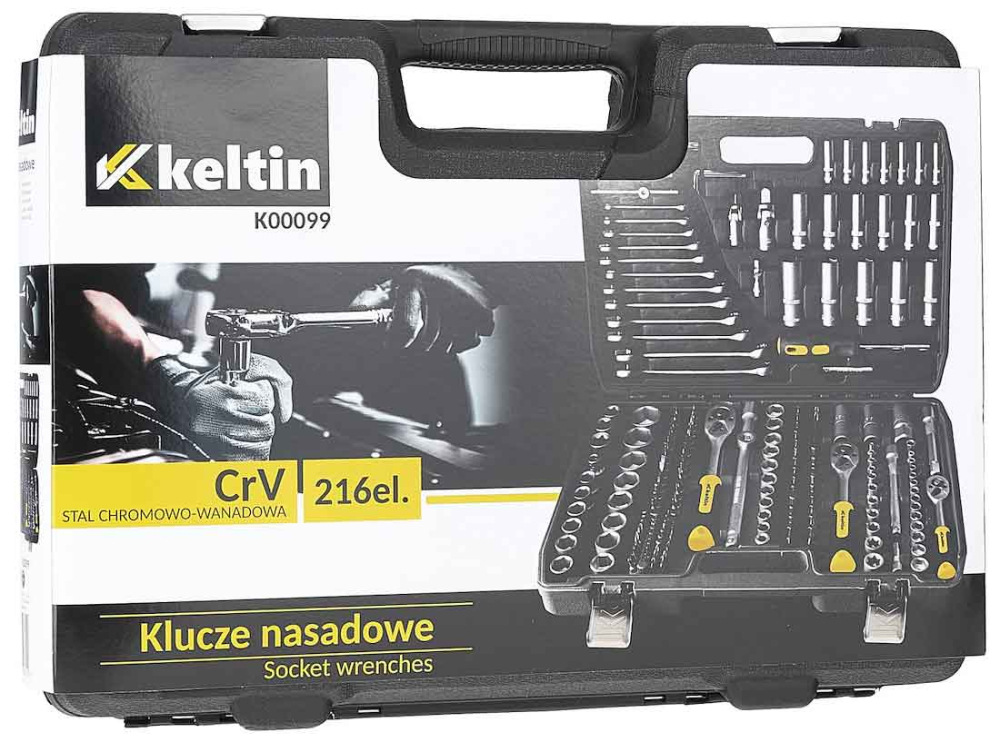 Gola sada 1/2" a 3/8" a 1/4", 216-dielna v plastovom kufri, KELTIN