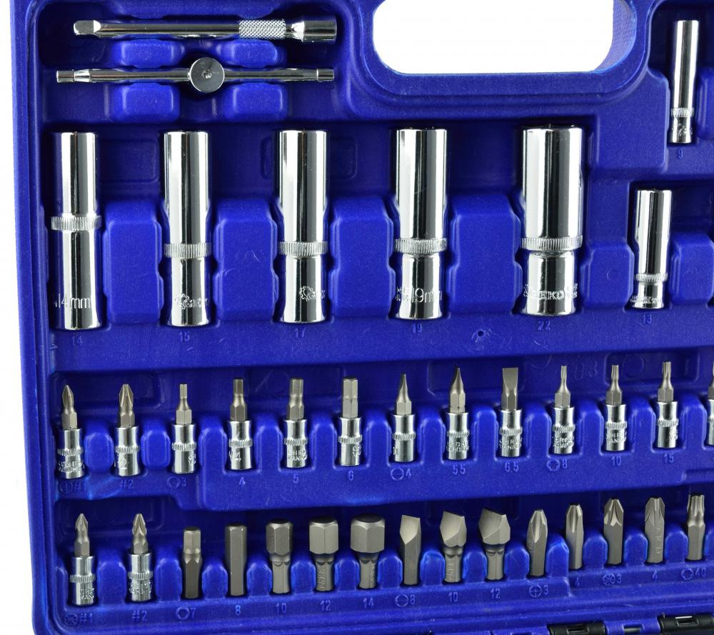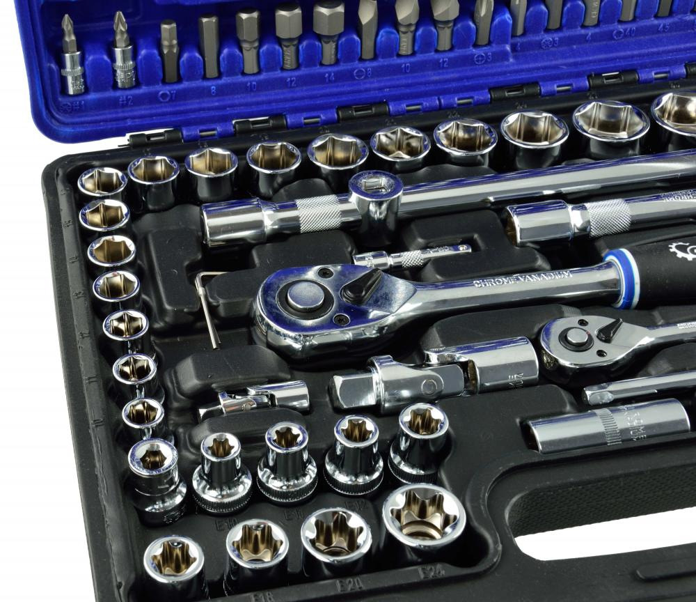 Gola sada 1/2 "a 1/4", 108 dielna. Univerzálna súprava určená pre servis, služby, ako aj pre domáce použitie. Kľúče sú vyrobené z vysoko kvalitnej chróm-vanádiovej ocele.