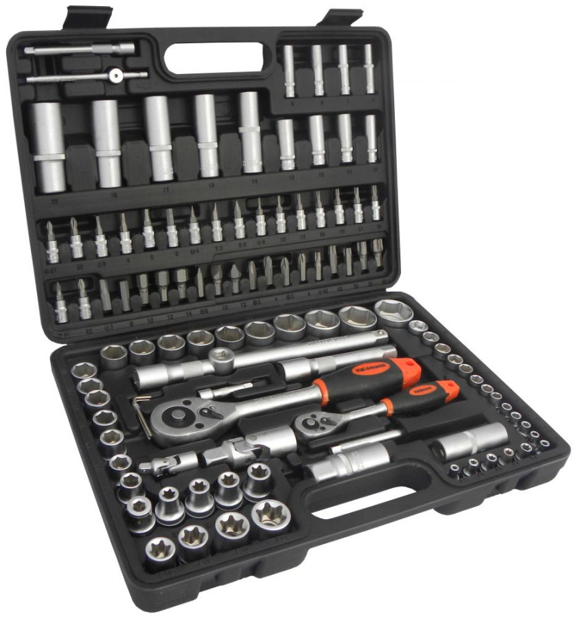 Gola sada 1/4 a 1/2 ", 108 dielna. Univerzálna súprava určená pre servis, služby, ako aj pre domáce použitie. V plastovom kufri, HEIDMAN.