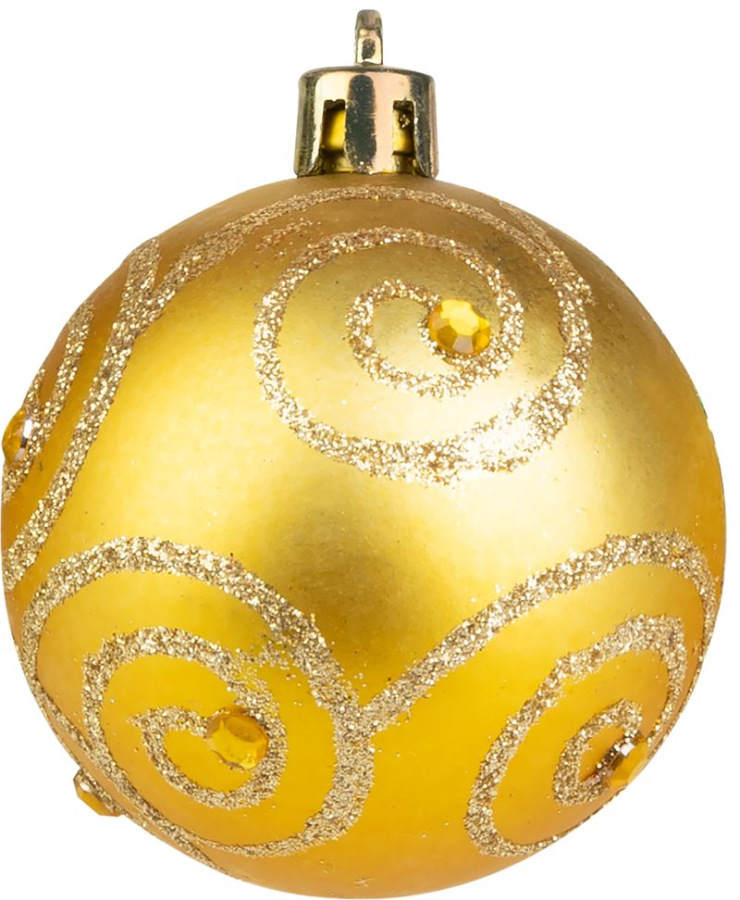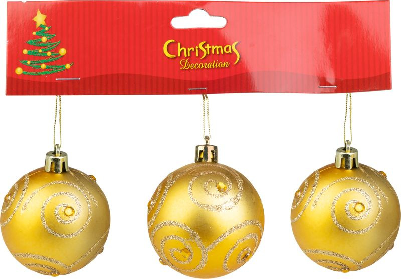 Súprava ozdôb na stromček slúži na slávnostné ozdobenie vianočného stromčeka. Pozostáva z 3 ks gulí s glitrami s priemerom 6 cm. Farba gulí je zlatá.