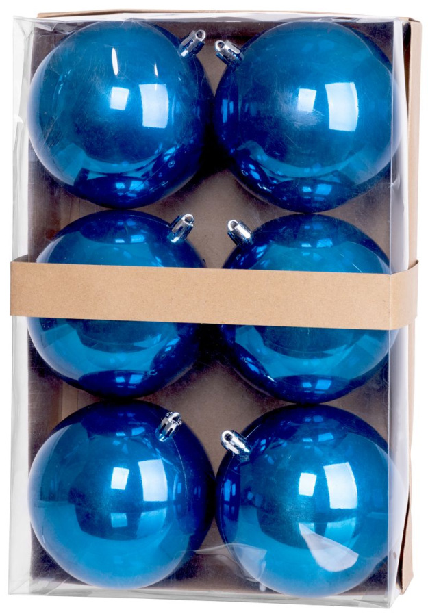 Súprava ozdôb na stromček slúži na slávnostné ozdobenie vianočného stromčeka. Pozostáva zo 6 ks vianočných gúľ s priemerom 10 cm. Farba gúľ je modrá, perleťová. Sú vyrobené z plastu.