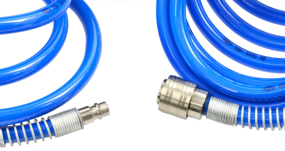 Samonavíjacia polyuretánová pneumatická hadica. Môže sa používať so všetkými vzduchom poháňanými zariadeniami vrátane v dielňach, garážach, továrňach, čerpacích staniciach. Hadica má otočné armatúry na zníženie nadmerného skrútenia. Mäkká polyuretánová povrchová úprava znižuje pravdepodobnosť povrchových škrabancov.