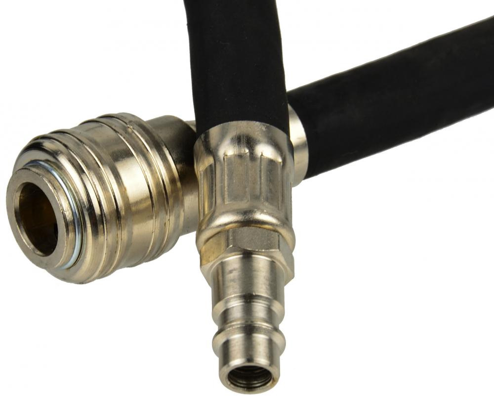 Profesionálna pneumatická gumová hadica dlhá 5 metrov. Hadica je vyrobená z materiálu odolného voči oleju a oderu. Flexibilná guma zabraňuje trvalej deformácii.