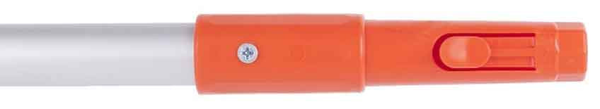 Hliníková násada na hrable. Na jednej strane je zakončená plastovým systémom ''CLICK'', ktorý sa hodí na všetky hrable a kefy RAMP, a na druhej strane ergonomickou rukoväťou s okom na zavesenie.