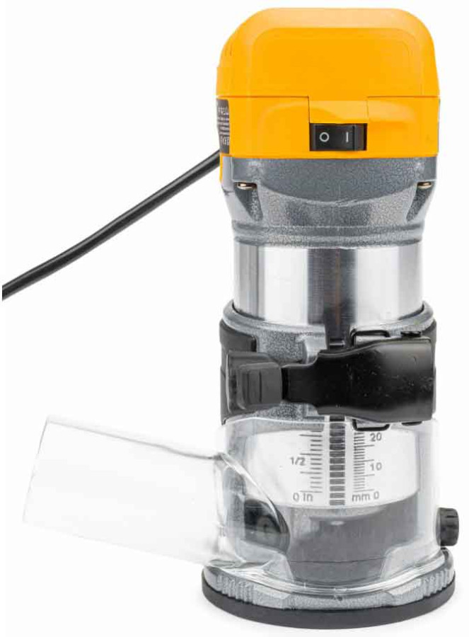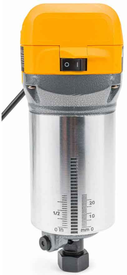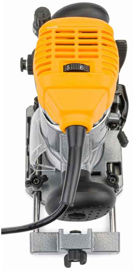 Horná fréza s výkonom 2000 W a reguláciou otáčok má kompaktný a ľahký dizajn, ktorý zvyšuje jednoduchosť používania a pohodlie pri práci. Regulácia otáčok motora sa nachádza na vrchnej časti frézy.