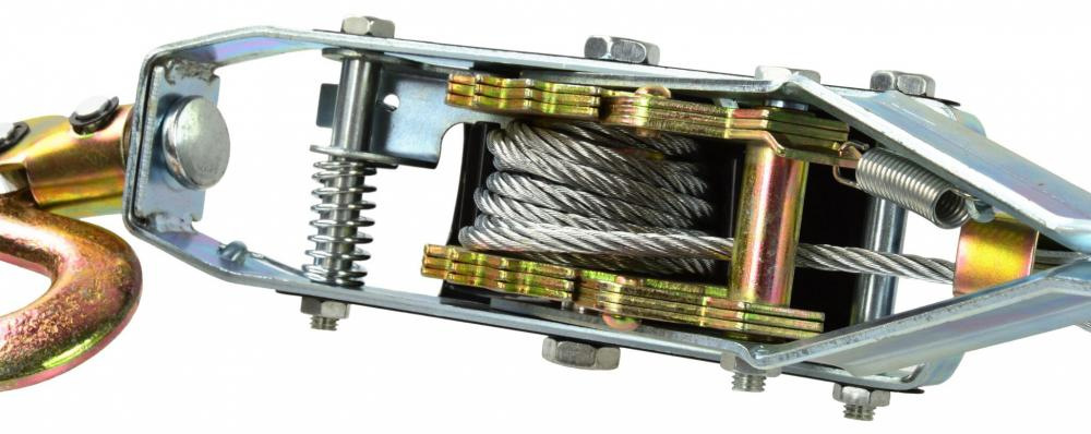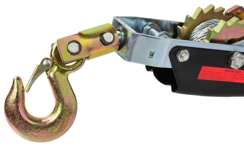 Horizontálny lanový ručný navijak je vybavený dvojitým uzamykacím mechanizmom, oceľovým lanom s priemerom 5 mm a dĺžkou 2,5 m, ktoré v kombinácii s odolnými hákmi vytvára ťažnú silu 4 000 kg.