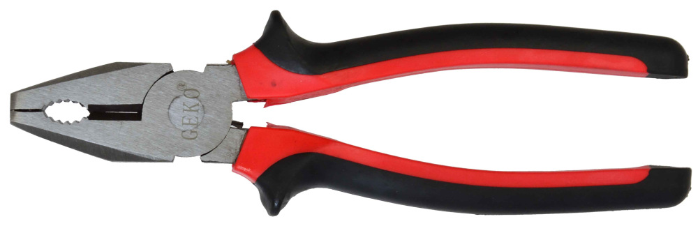 Kliešte kombinované 200 mm, poniklované, dvojplastová rukoväť, GEKO