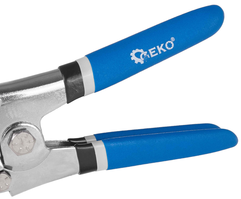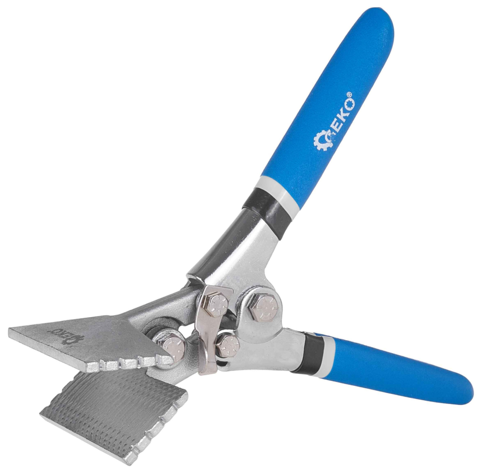 Kliešte na tvarovanie profilov Geko sú solídne a spoľahlivé náradie určené pre profesionálov a domácich majstrov zaoberajúcich sa spracovaním plechu. Vďaka špeciálne navrhnutým čeľustiam s rozmermi 80x35 mm , ktoré majú protišmykové zárezy, nástroj zaisťuje pevné uchopenie a presné tvarovanie plechu. Ergonomické rukoväte s protišmykovou úpravou zaručujú pohodlie pri práci aj pri dlhšom používaní. Kliešte sú ideálne na tvarovanie kovových profilov, ohýbanie hrán alebo dokončovanie plechových prvkov v pokrývači, vzduchotechnike a stavebníctve.