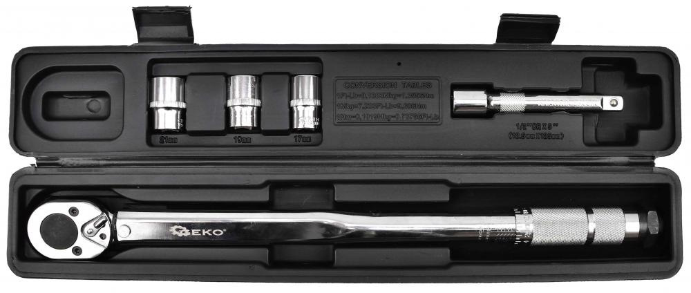 Kľúč momentový ohybový 28-210 Nm 1/2", hlavice 17, 19, 21 mm, nadstavec 125 mm, GEKO