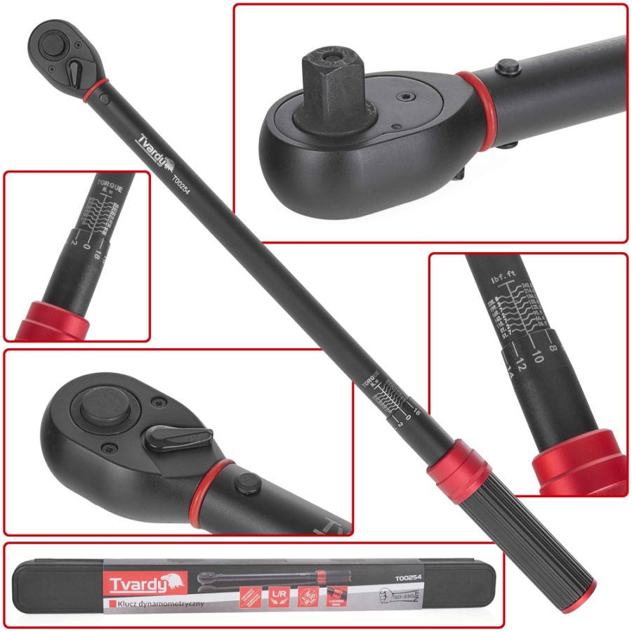 Momentový kľúč 1/2" od Tvardy je profesionálny nástroj, ktorý umožňuje presné uťahovanie skrutiek a matíc presne definovanou silou . Vďaka rozsahu nastavenia uťahovacej sily od 50 do 330 Nm (36,9-243,5 lbf.ft) je ideálny pre aplikácie, kde sa vyžaduje presnosť Náš momentový kľúč sa vyznačuje schopnosťou manipulovať so skrutkami s pravým aj ľavým závitom.