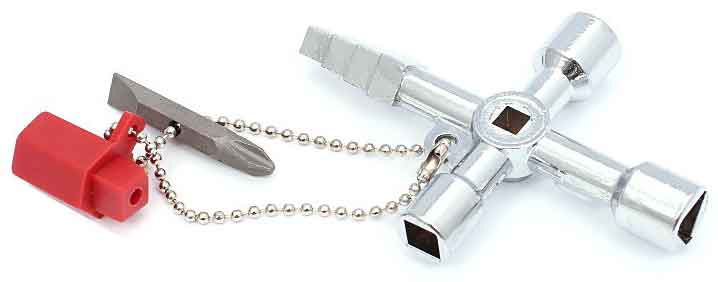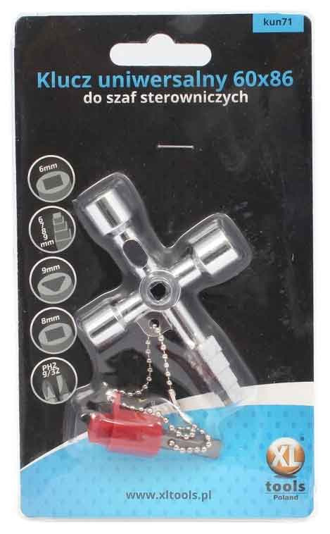 Kľúč univerzálny na rozvádzacie skrinky 60 x 86 mm, 4 rôzne koncovky, kovový, XL-TOOLS