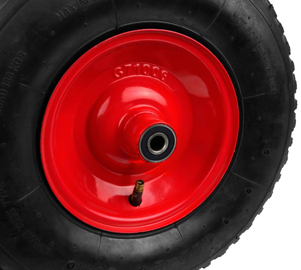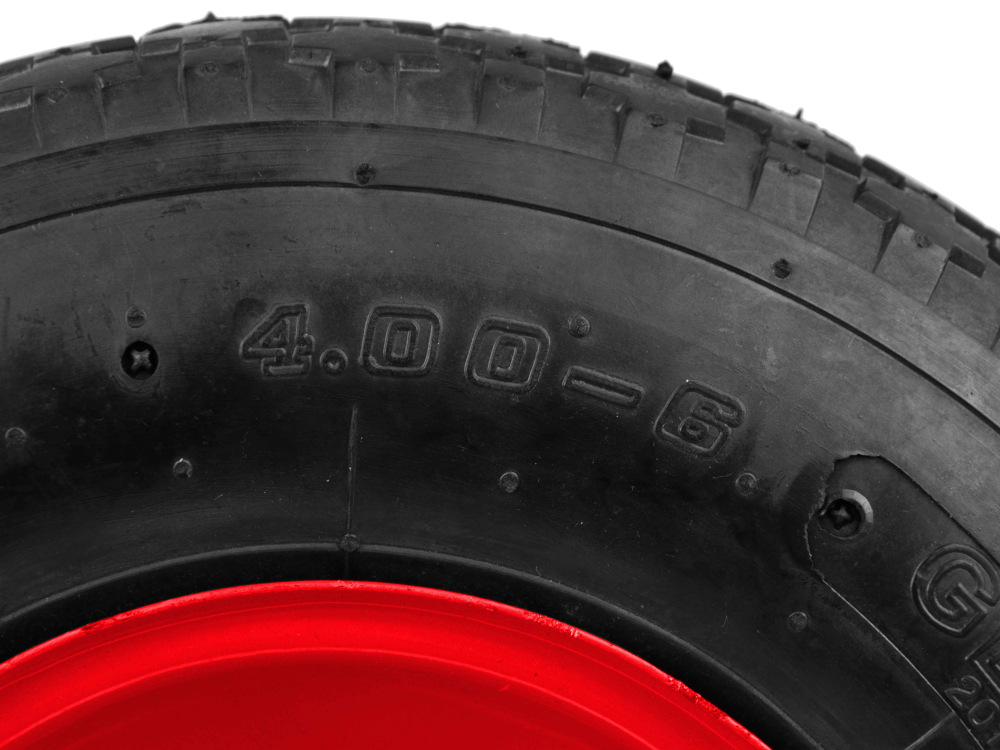 Nafukovacie koleso 2PR s maximálnym zaťažením do 136 kg. Odolný práškový lak a kovový disk poskytuje zvýšenú stabilitu. Celok je vyrobený z vysoko kvalitných materiálov.