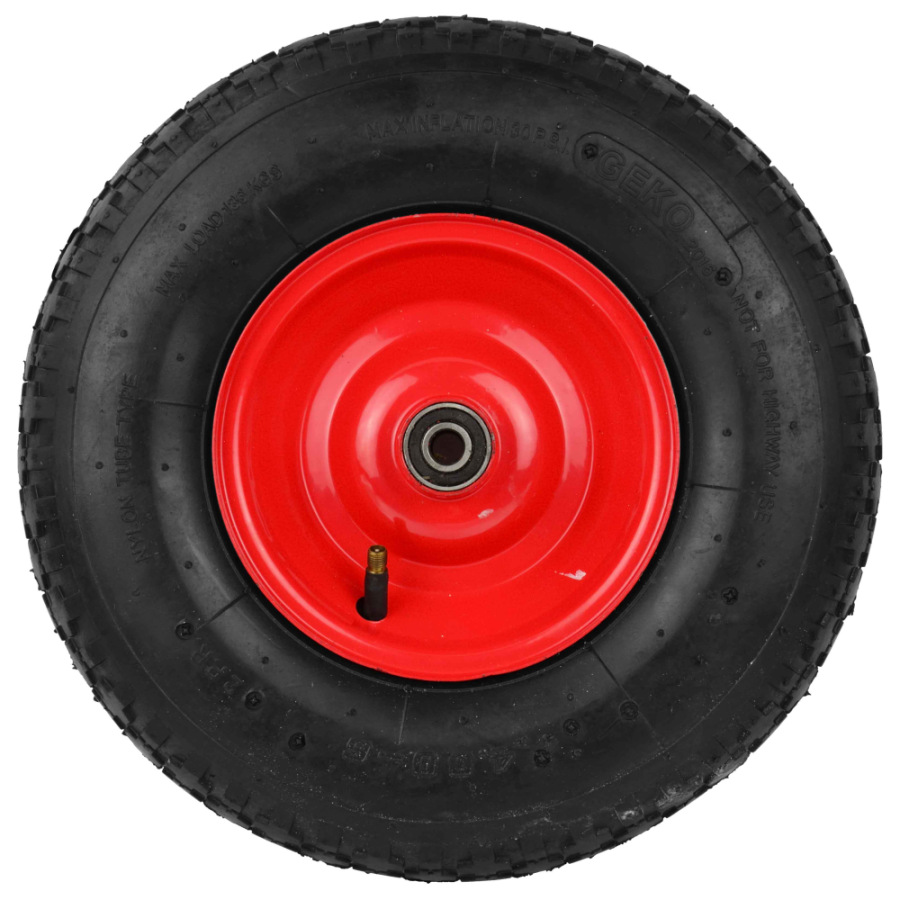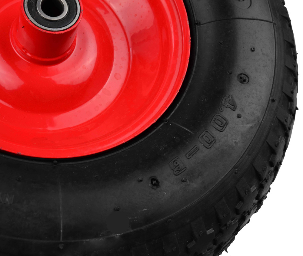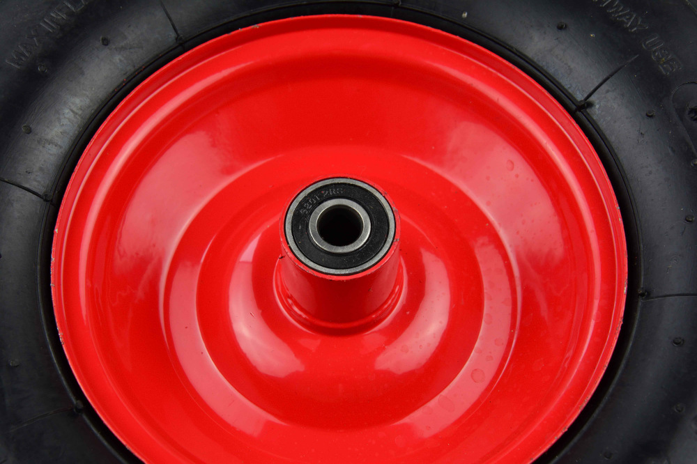 Nafukovacie koleso 2PR s maximálnym zaťažením do 136 kg. Odolný práškový lak a kovový disk poskytuje zvýšenú stabilitu. Celok je vyrobený z vysoko kvalitných materiálov.