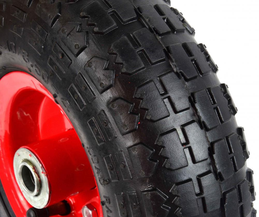 Nafukovacie koleso 2PR s maximálnym zaťažením do 136 kg. Odolný práškový lak a kovový disk poskytuje zvýšenú stabilitu. Celok je vyrobený z vysoko kvalitných materiálov.
