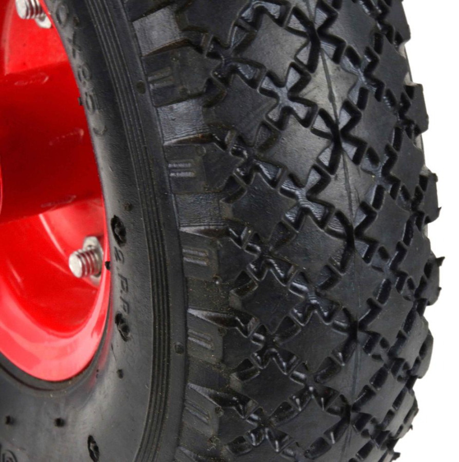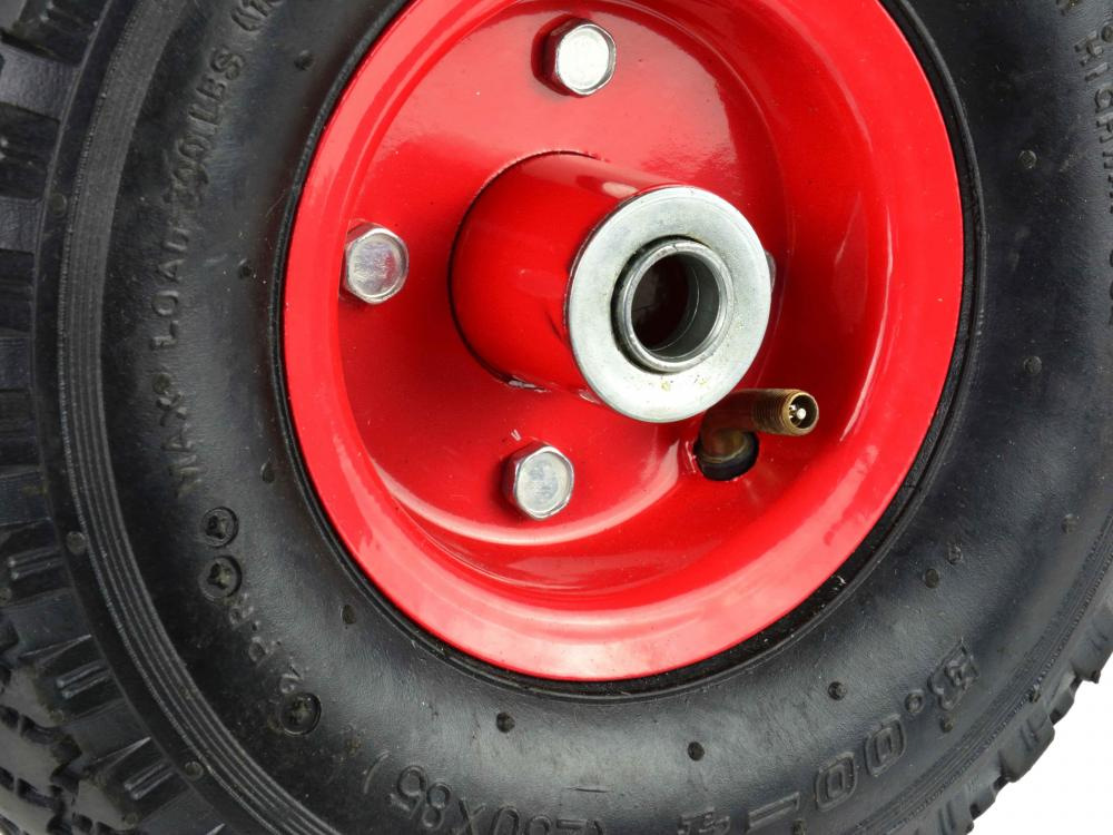 Nafukovacie koleso 2PR s maximálnym zaťažením do 136 kg. Odolný práškový lak a kovový okraj poskytuje zvýšenú stabilitu. Celok je vyrobený z vysoko kvalitných materiálov.