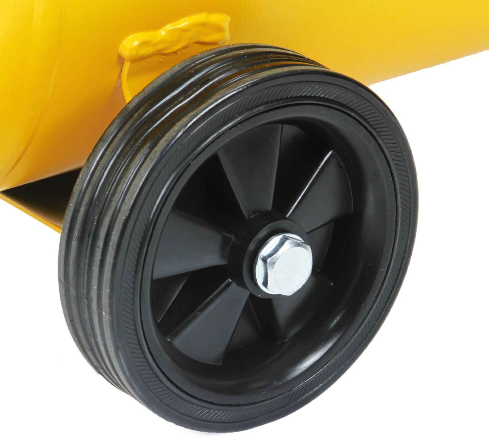 - Kolieska z plnej gumy – vyrobené z vysoko kvalitného materiálu, umožňujúrýchly pohyb kompresora.