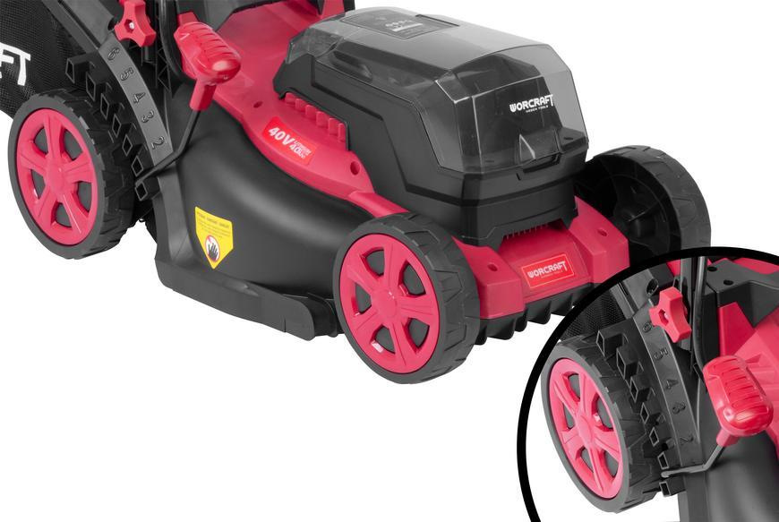 Kosačka Worcraft CLM-S40Li je akumulátorová kosačka, ktorá kombinuje výhody elektrických kosačiek. Zdrojom energie sú dva kvalitné Li-ion akumulátory. Kosačka pracuje rýchlosťou až 2600 otáčok/ min. Šírka záberu pri kosení dosahuje 34 cm a rezná výška je 25 až 75 mm/ 6 stupňov. Akumulátorová kosačka disponuje zberným košom s objemom 35 litrov. Pokosená plocha na jedno nabitie akumulátora predstavuje až 250 m2. Balenie obsahuje 2x akumulátor 4.0 Ah a nabíjačku.