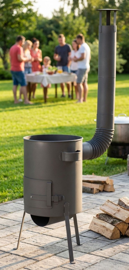 Kotlina Baker pod kotlík s objemom 60 litrov. Priemer kotliny je 56 cm, balenie obsahuje aj dymovod s priemerom 12 cm, koleno a striešku.