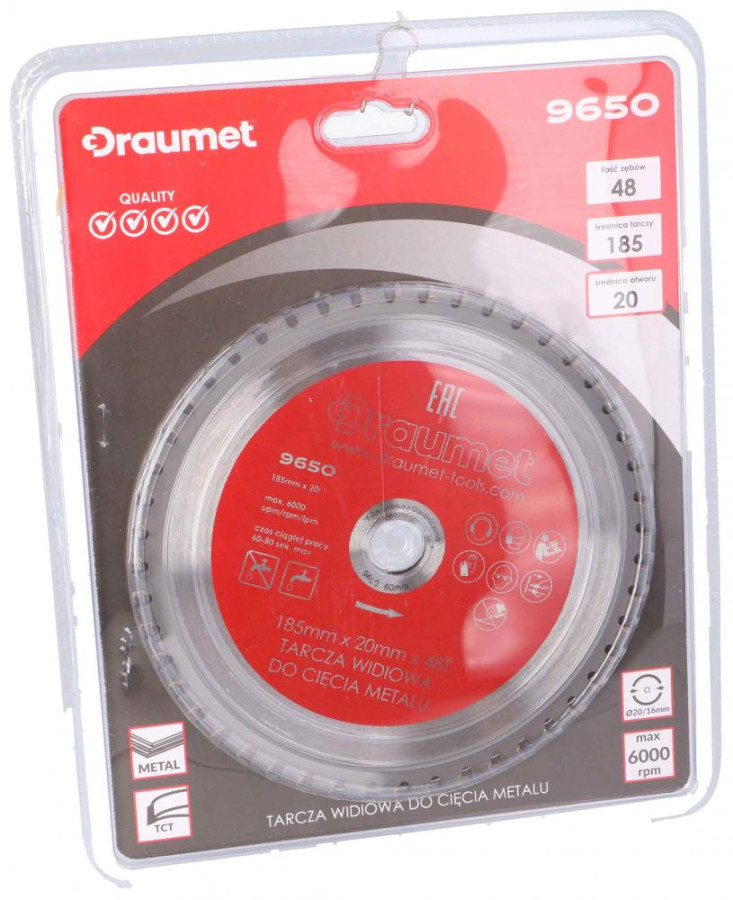 Kotúč pílový s SK plátkami na rezanie kovu 185x2.0x20 48 zubov, DRAUMET