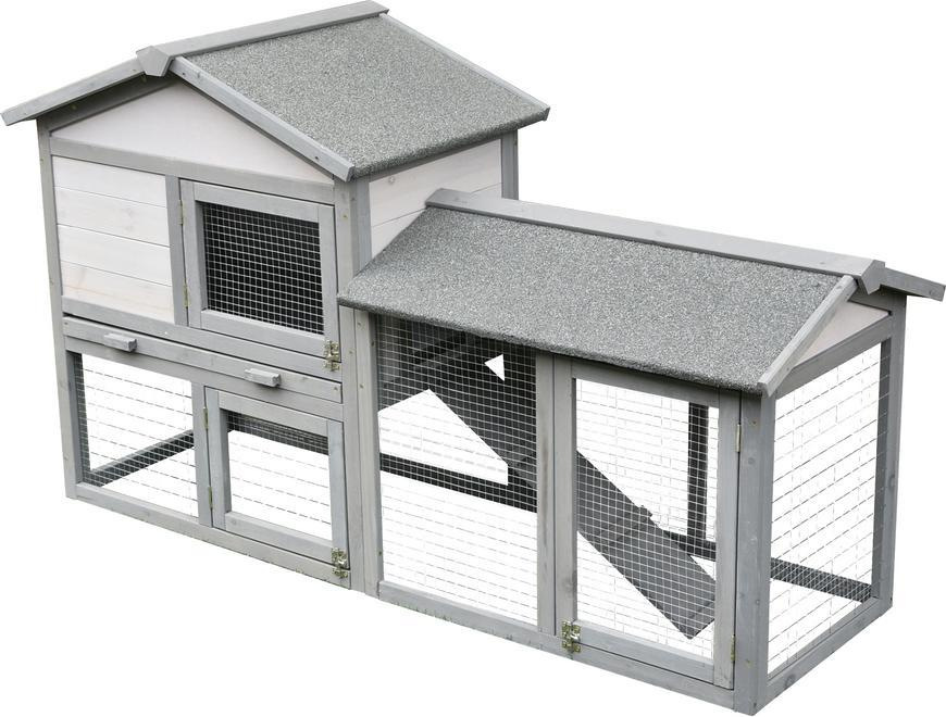 - Dvojdielna konštrukcia: uzavretá časť na spánok a úkryt + priestranný drôtený výbeh.