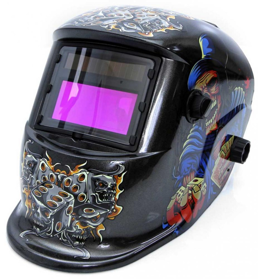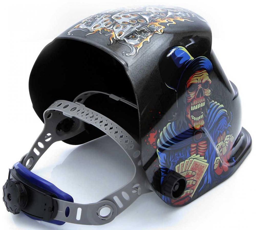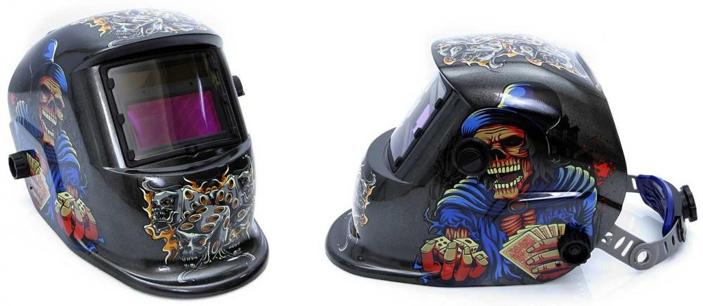 Kukla zváračska samostmievacia s nálepkou kostlivca, zorník 95 x 43 mm, MAR-POL