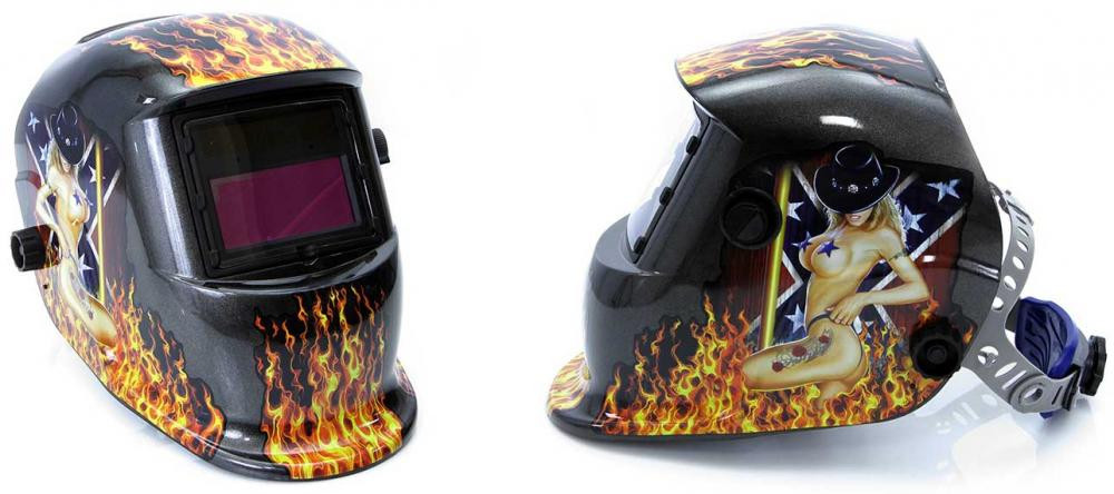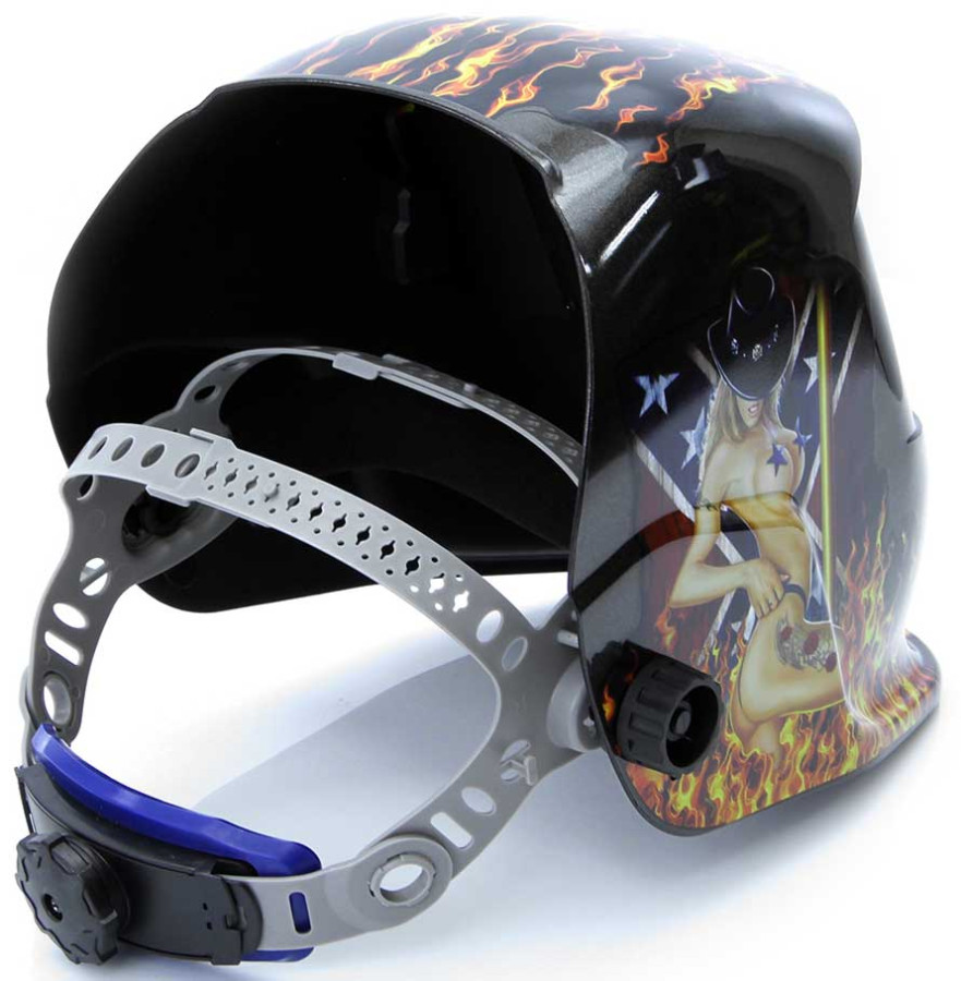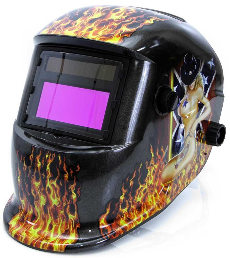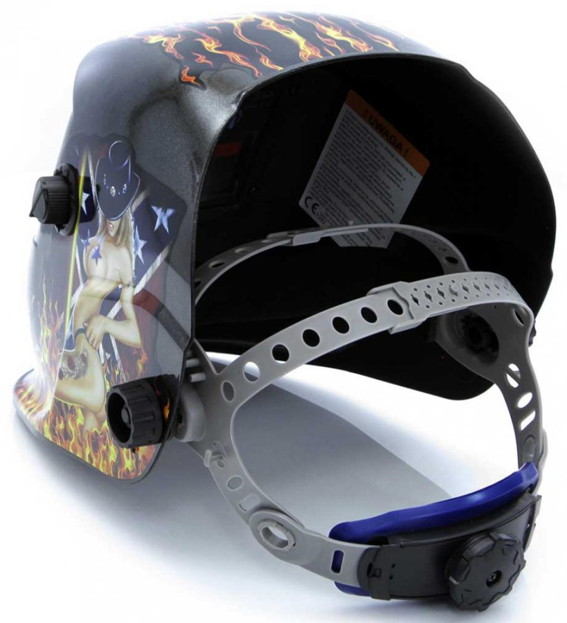Kukla zváračska samostmievacia s nálepkou ženy v plameňoch, zorník 95 x 43 mm, MAR-POL