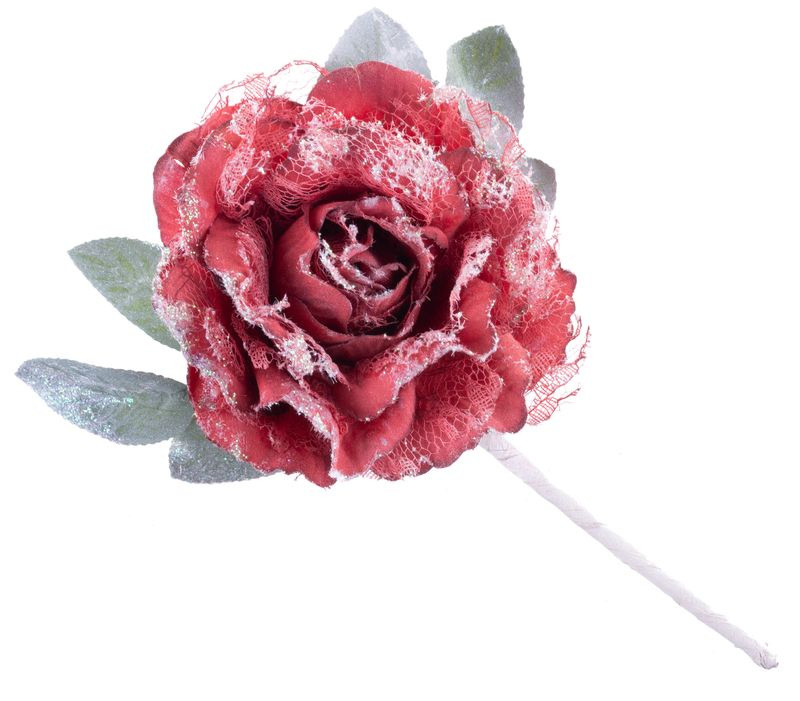 Vetvička MagicHome Vianoce, s ružou, červená, 25,5 cm