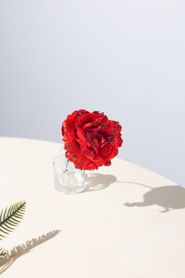 Dodajte svojmu vianočnému stromčeku alebo sviatočnej výzdobe šmrnc s elegantným červeným kvetom MagicHome Vianoce v tvare ruže. Tento dekoratívny doplnok vyniká svojou sýto červenou farbou a detailným spracovaním s ozdobnými akcentmi, ktoré pôsobia luxusne a slávnostne.