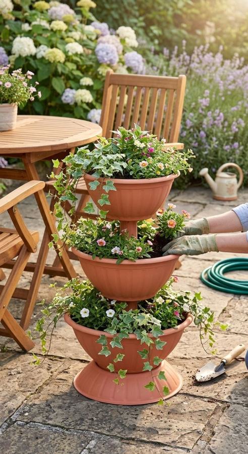 Kvetináč Strend Pro PYRAMID, trojpodlažný, 86 cm, terakota